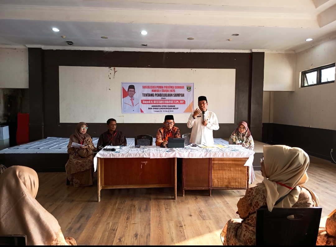 PADANG,-Anggota Komisi IV DPRD Provinsi Sumatera Barat, Gustami Hidayat, mensosialisasikan Perda Sumatera Barat Nomor 1 Tahun 2025 kepada masyarakat, Jumat (13/3).
