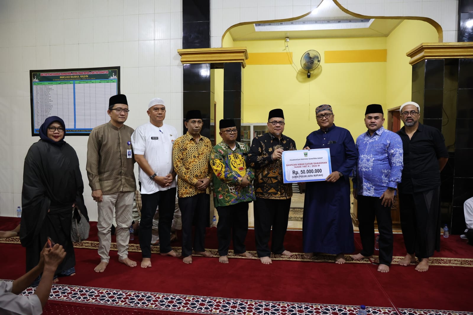 Dalam kesempatan itu, Muhidi juga menyerahkan bantuan pembangunan masjid sebesar Rp50 juta untuk mendukung perbaikan sarana ibadah bagi masyarakat setempat, Bank Nagari juga memberikan sebesar Rp 5 juta.